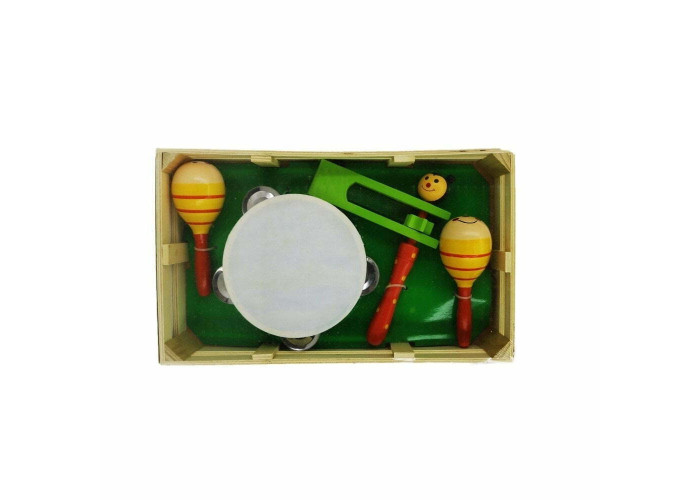 კომპლექტშია ხის დოლი, ორი მარაკასი და ხის საკრავი(ჭექა-ქუხილი)